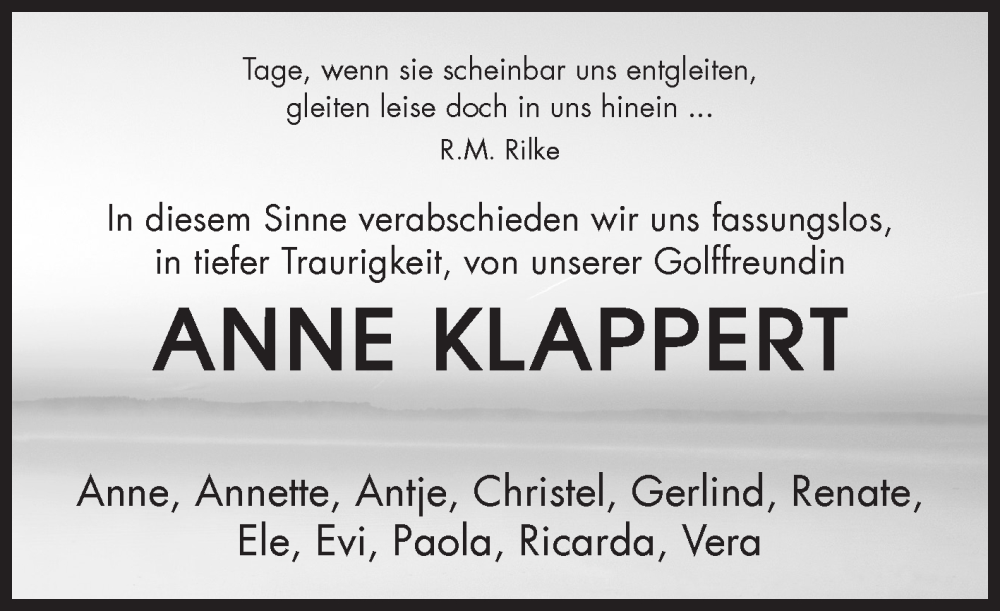 Hier finden Sie alle Traueranzeigen aus der Zeitung, die bisher für Anne Klappert erschienen sind. Weitere Traueranzeigen, die in der Zeitung erscheinen, werden hier ebenfalls aufgelistet