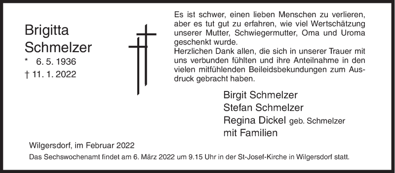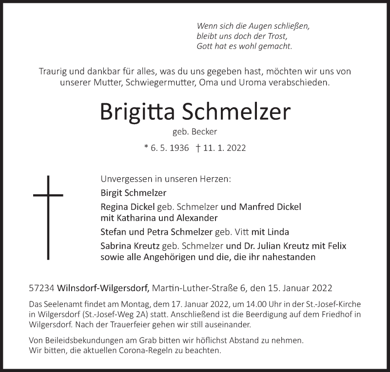 Hier finden Sie alle Traueranzeigen aus der Zeitung, die bisher für Brigitta Schmelzer erschienen sind. Weitere Traueranzeigen, die in der Zeitung erscheinen, werden hier ebenfalls aufgelistet