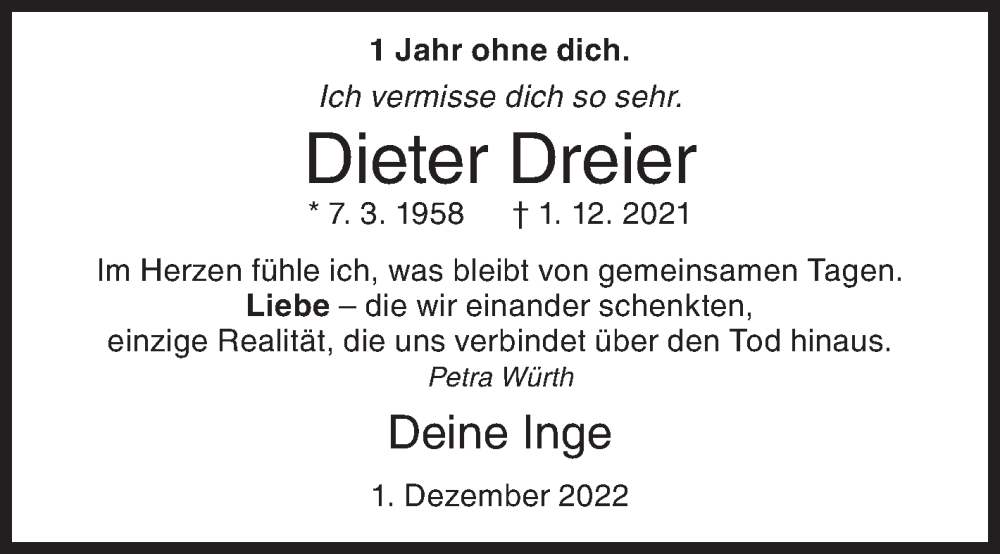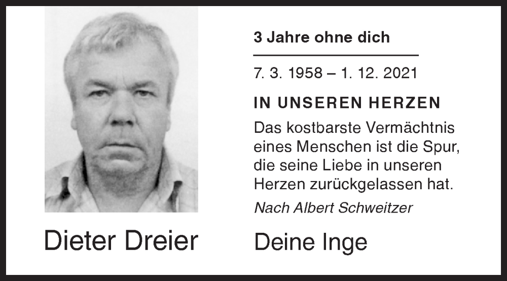 Hier finden Sie alle Traueranzeigen aus der Zeitung, die bisher für Dieter Dreier erschienen sind. Weitere Traueranzeigen, die in der Zeitung erscheinen, werden hier ebenfalls aufgelistet