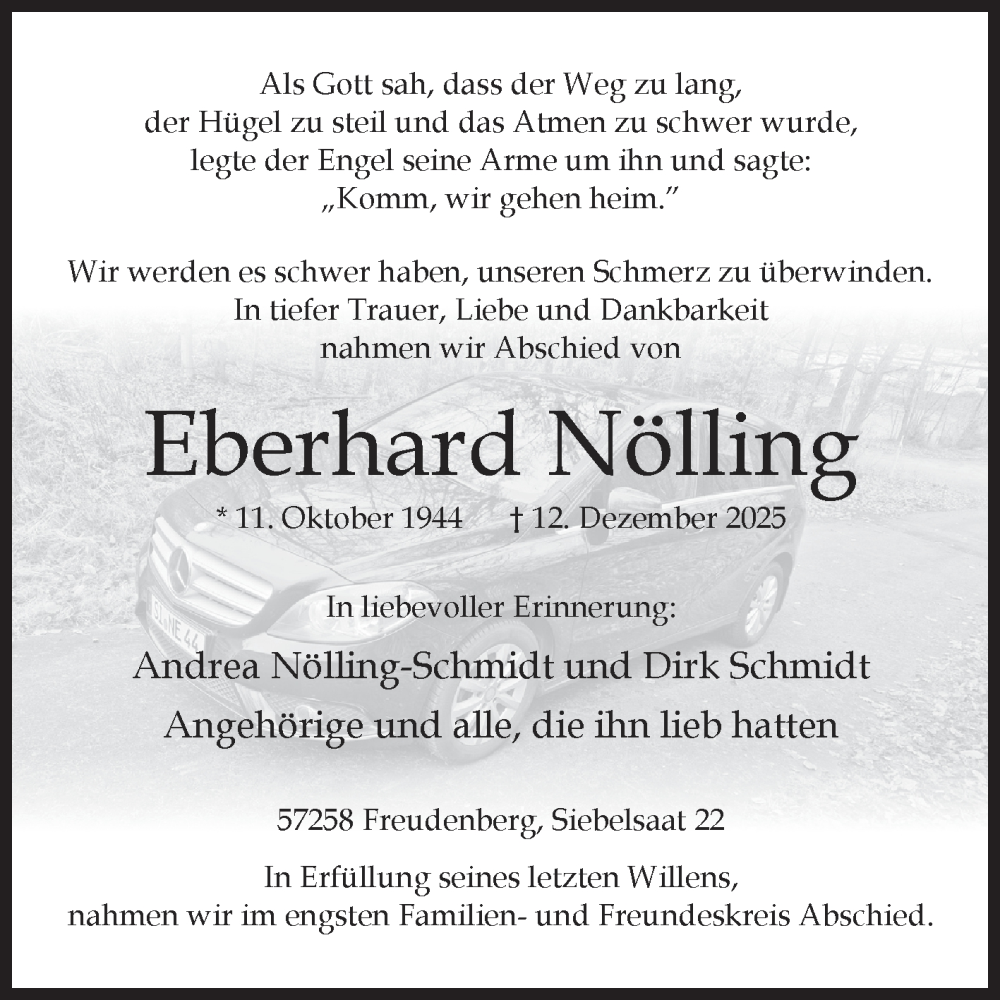 Hier finden Sie alle Traueranzeigen aus der Zeitung, die bisher für Eberhard Nölling erschienen sind. Weitere Traueranzeigen, die in der Zeitung erscheinen, werden hier ebenfalls aufgelistet