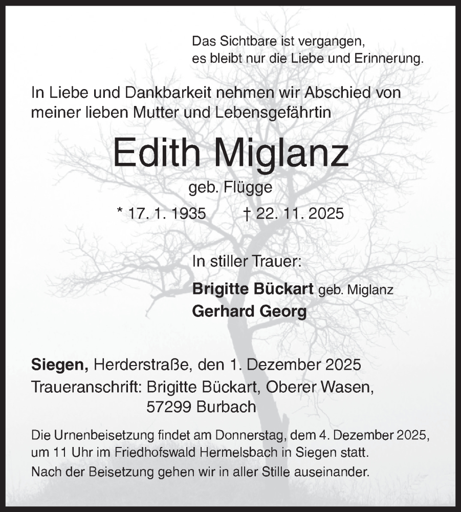 Hier finden Sie alle Traueranzeigen aus der Zeitung, die bisher für Edith Miglanz erschienen sind. Weitere Traueranzeigen, die in der Zeitung erscheinen, werden hier ebenfalls aufgelistet