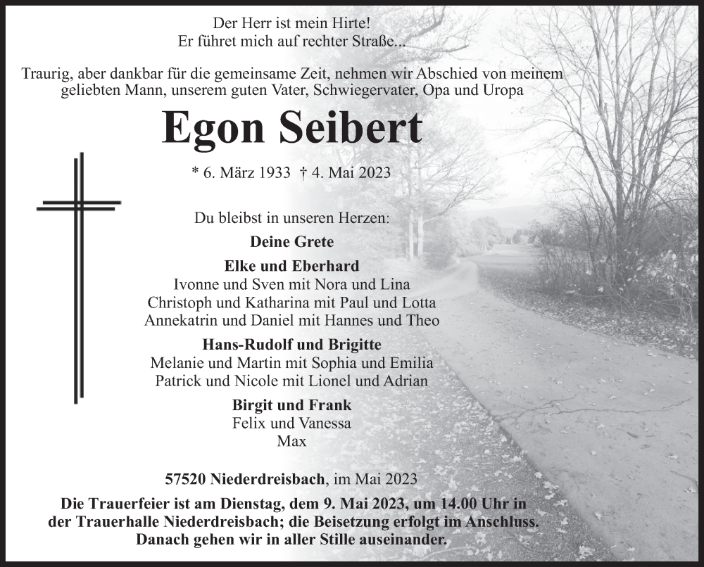 Hier finden Sie alle Traueranzeigen aus der Zeitung, die bisher für Egon Seibert erschienen sind. Weitere Traueranzeigen, die in der Zeitung erscheinen, werden hier ebenfalls aufgelistet