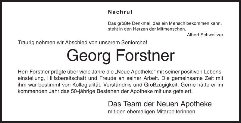 Hier finden Sie alle Traueranzeigen aus der Zeitung, die bisher für Georg Forstner erschienen sind. Weitere Traueranzeigen, die in der Zeitung erscheinen, werden hier ebenfalls aufgelistet