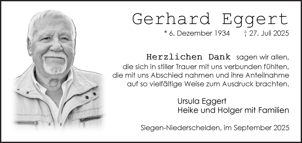 Hier finden Sie alle Traueranzeigen aus der Zeitung, die bisher für Gerhard Eggert erschienen sind. Weitere Traueranzeigen, die in der Zeitung erscheinen, werden hier ebenfalls aufgelistet