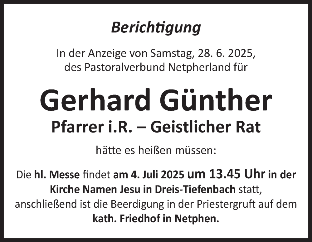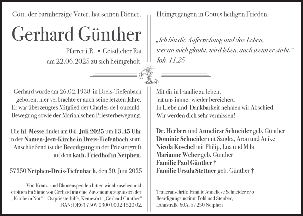 Hier finden Sie alle Traueranzeigen aus der Zeitung, die bisher für Gerhard Günther erschienen sind. Weitere Traueranzeigen, die in der Zeitung erscheinen, werden hier ebenfalls aufgelistet