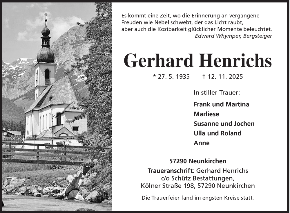 Hier finden Sie alle Traueranzeigen aus der Zeitung, die bisher für Gerhard Henrichs erschienen sind. Weitere Traueranzeigen, die in der Zeitung erscheinen, werden hier ebenfalls aufgelistet