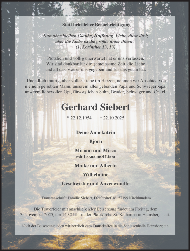 Hier finden Sie alle Traueranzeigen aus der Zeitung, die bisher für Gerhard Siebert erschienen sind. Weitere Traueranzeigen, die in der Zeitung erscheinen, werden hier ebenfalls aufgelistet