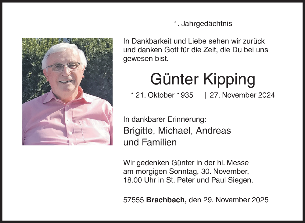 Hier finden Sie alle Traueranzeigen aus der Zeitung, die bisher für Günter Kipping erschienen sind. Weitere Traueranzeigen, die in der Zeitung erscheinen, werden hier ebenfalls aufgelistet