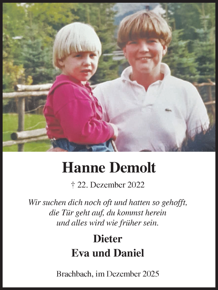Hier finden Sie alle Traueranzeigen aus der Zeitung, die bisher für Hanne Demolt erschienen sind. Weitere Traueranzeigen, die in der Zeitung erscheinen, werden hier ebenfalls aufgelistet