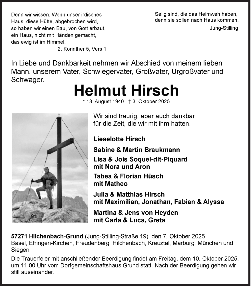 Hier finden Sie alle Traueranzeigen aus der Zeitung, die bisher für Helmut Hirsch erschienen sind. Weitere Traueranzeigen, die in der Zeitung erscheinen, werden hier ebenfalls aufgelistet