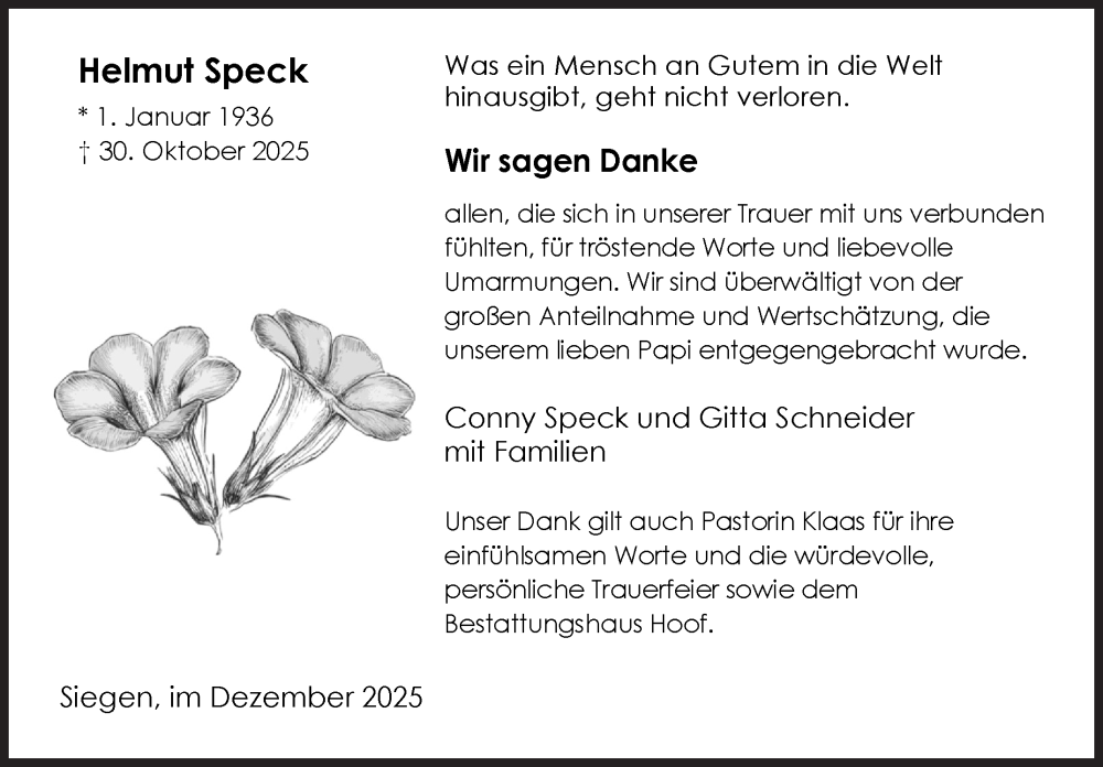 Hier finden Sie alle Traueranzeigen aus der Zeitung, die bisher für Helmut Speck erschienen sind. Weitere Traueranzeigen, die in der Zeitung erscheinen, werden hier ebenfalls aufgelistet