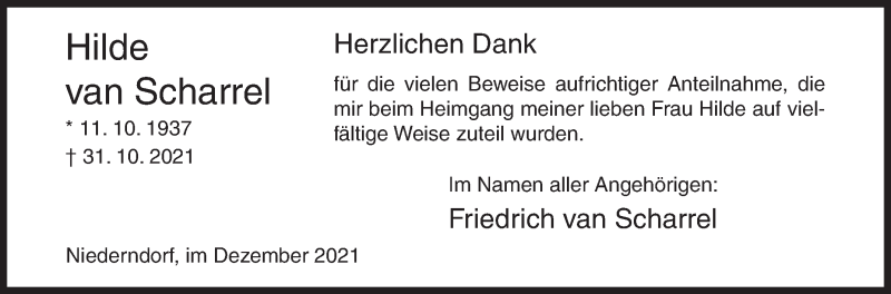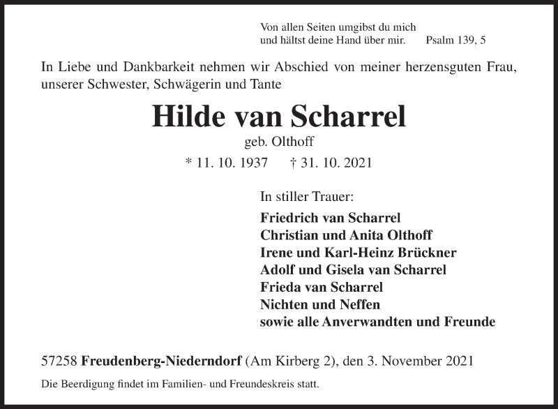 Hier finden Sie alle Traueranzeigen aus der Zeitung, die bisher für Hilde van Scharrel erschienen sind. Weitere Traueranzeigen, die in der Zeitung erscheinen, werden hier ebenfalls aufgelistet