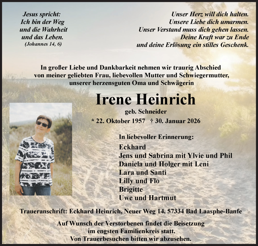 Hier finden Sie alle Traueranzeigen aus der Zeitung, die bisher für Irene Heinrich erschienen sind. Weitere Traueranzeigen, die in der Zeitung erscheinen, werden hier ebenfalls aufgelistet
