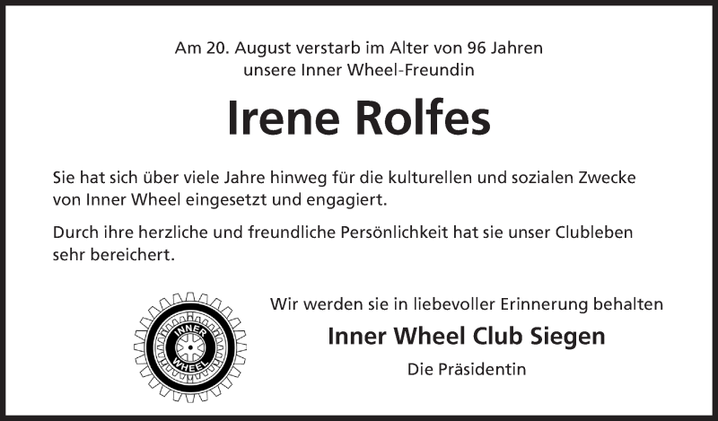 Hier finden Sie alle Traueranzeigen aus der Zeitung, die bisher für Irene Rolfes erschienen sind. Weitere Traueranzeigen, die in der Zeitung erscheinen, werden hier ebenfalls aufgelistet