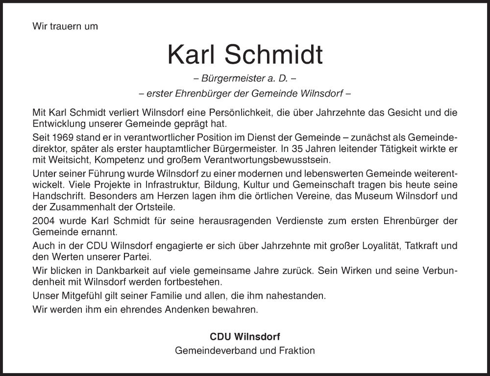 Hier finden Sie alle Traueranzeigen aus der Zeitung, die bisher für Karl Schmidt erschienen sind. Weitere Traueranzeigen, die in der Zeitung erscheinen, werden hier ebenfalls aufgelistet