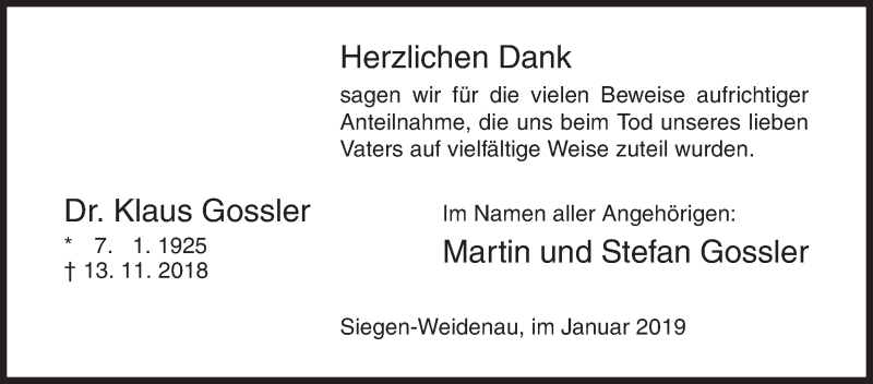 Hier finden Sie alle Traueranzeigen aus der Zeitung, die bisher für Klaus Gossler erschienen sind. Weitere Traueranzeigen, die in der Zeitung erscheinen, werden hier ebenfalls aufgelistet