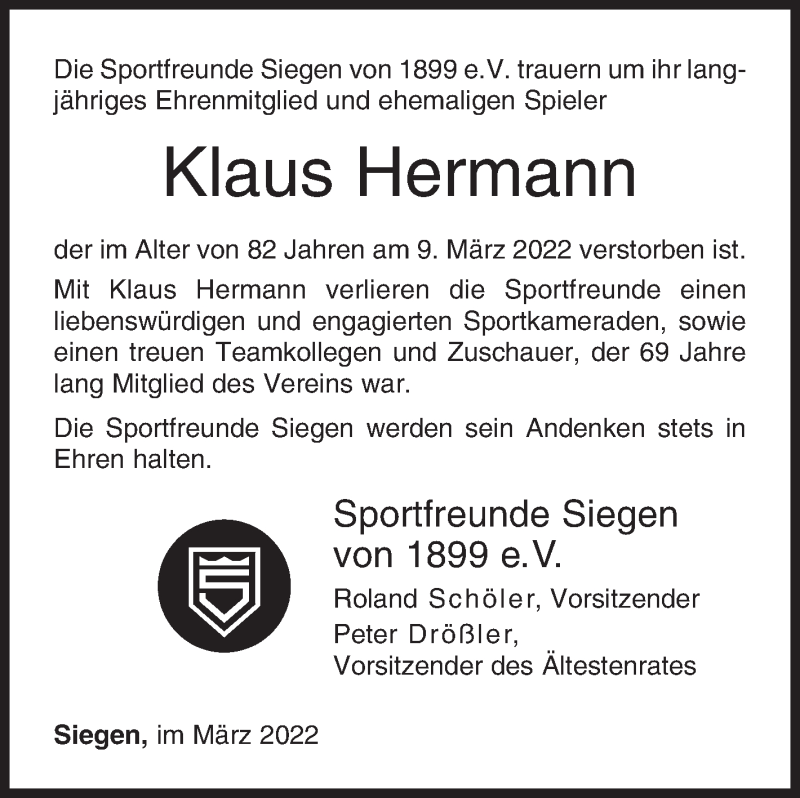 Hier finden Sie alle Traueranzeigen aus der Zeitung, die bisher für Klaus Hermann erschienen sind. Weitere Traueranzeigen, die in der Zeitung erscheinen, werden hier ebenfalls aufgelistet