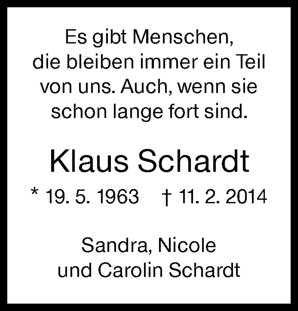 Hier finden Sie alle Traueranzeigen aus der Zeitung, die bisher für Klaus Schardt erschienen sind. Weitere Traueranzeigen, die in der Zeitung erscheinen, werden hier ebenfalls aufgelistet