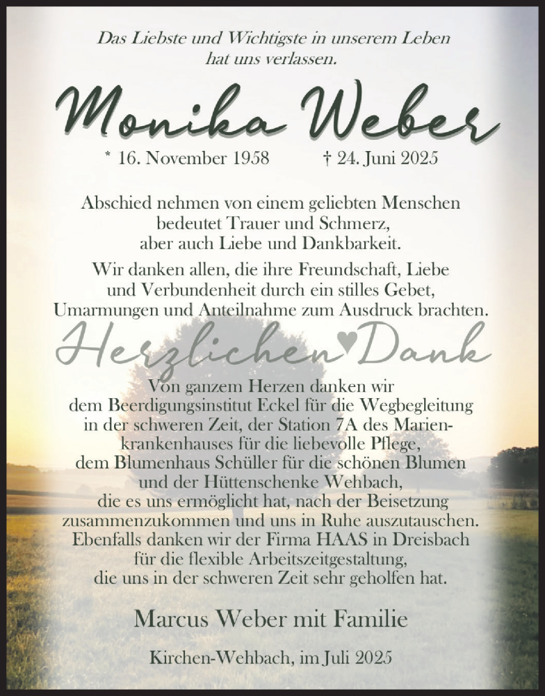 Hier finden Sie alle Traueranzeigen aus der Zeitung, die bisher für Monika Weber erschienen sind. Weitere Traueranzeigen, die in der Zeitung erscheinen, werden hier ebenfalls aufgelistet