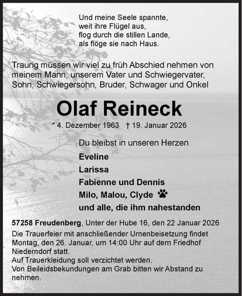 Hier finden Sie alle Traueranzeigen aus der Zeitung, die bisher für Olaf Reineck erschienen sind. Weitere Traueranzeigen, die in der Zeitung erscheinen, werden hier ebenfalls aufgelistet