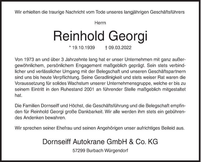 Hier finden Sie alle Traueranzeigen aus der Zeitung, die bisher für Reinhold Georgi erschienen sind. Weitere Traueranzeigen, die in der Zeitung erscheinen, werden hier ebenfalls aufgelistet