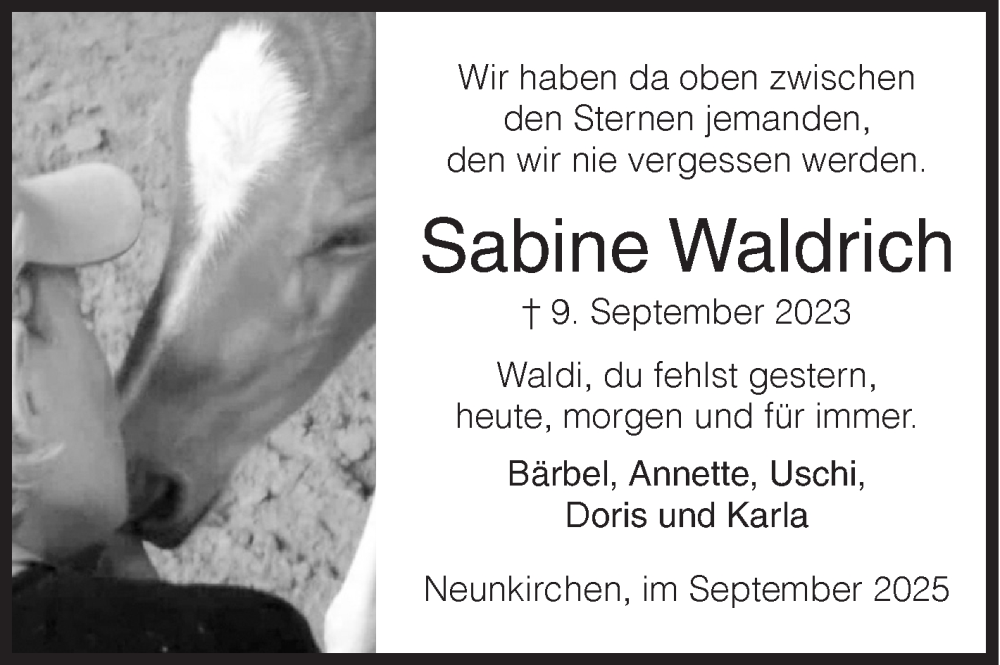 Hier finden Sie alle Traueranzeigen aus der Zeitung, die bisher für Sabine Waldrich erschienen sind. Weitere Traueranzeigen, die in der Zeitung erscheinen, werden hier ebenfalls aufgelistet