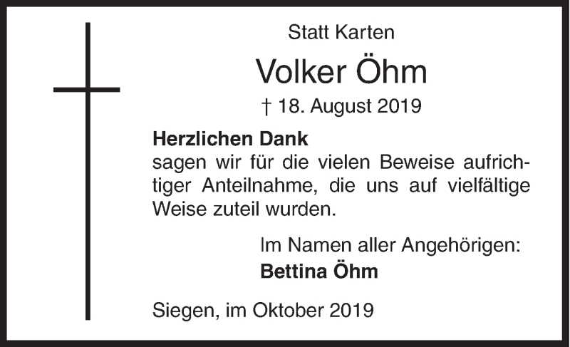 Hier finden Sie alle Traueranzeigen aus der Zeitung, die bisher für Volker Öhm erschienen sind. Weitere Traueranzeigen, die in der Zeitung erscheinen, werden hier ebenfalls aufgelistet