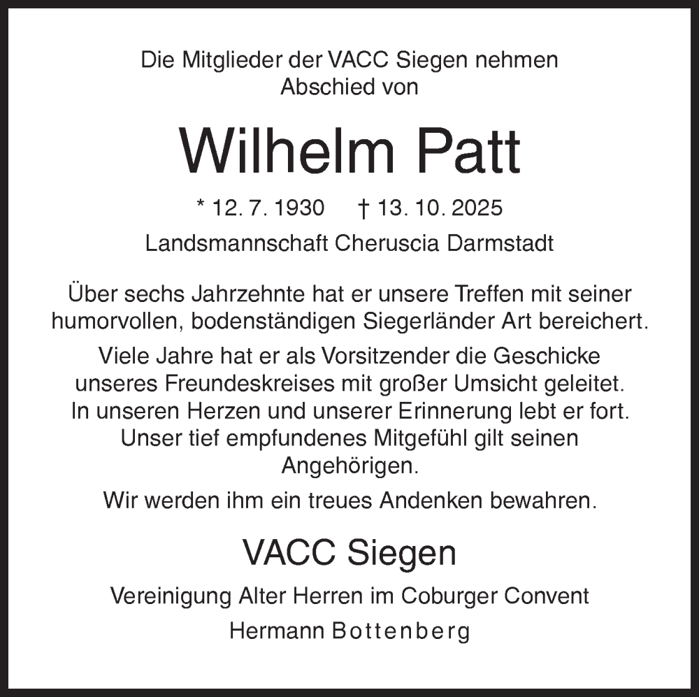 Hier finden Sie alle Traueranzeigen aus der Zeitung, die bisher für Wilhelm Patt erschienen sind. Weitere Traueranzeigen, die in der Zeitung erscheinen, werden hier ebenfalls aufgelistet